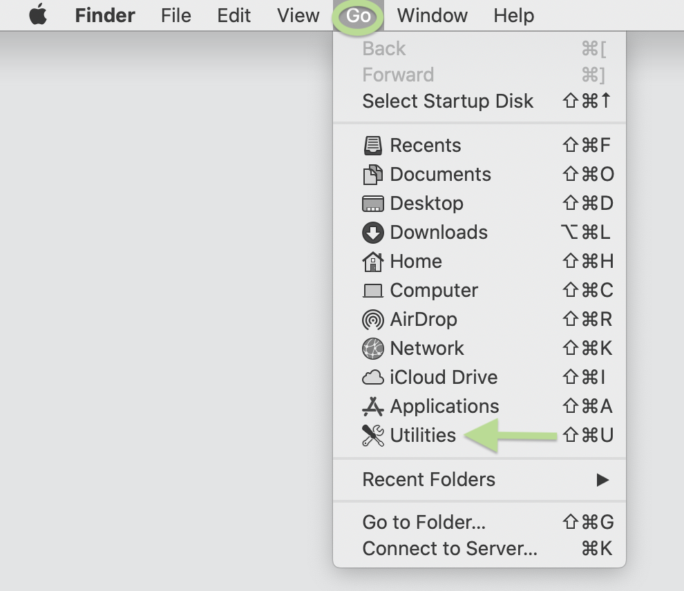 1. Open Utilities by clicking ‘Go’ on the top menu bar of your desktop
