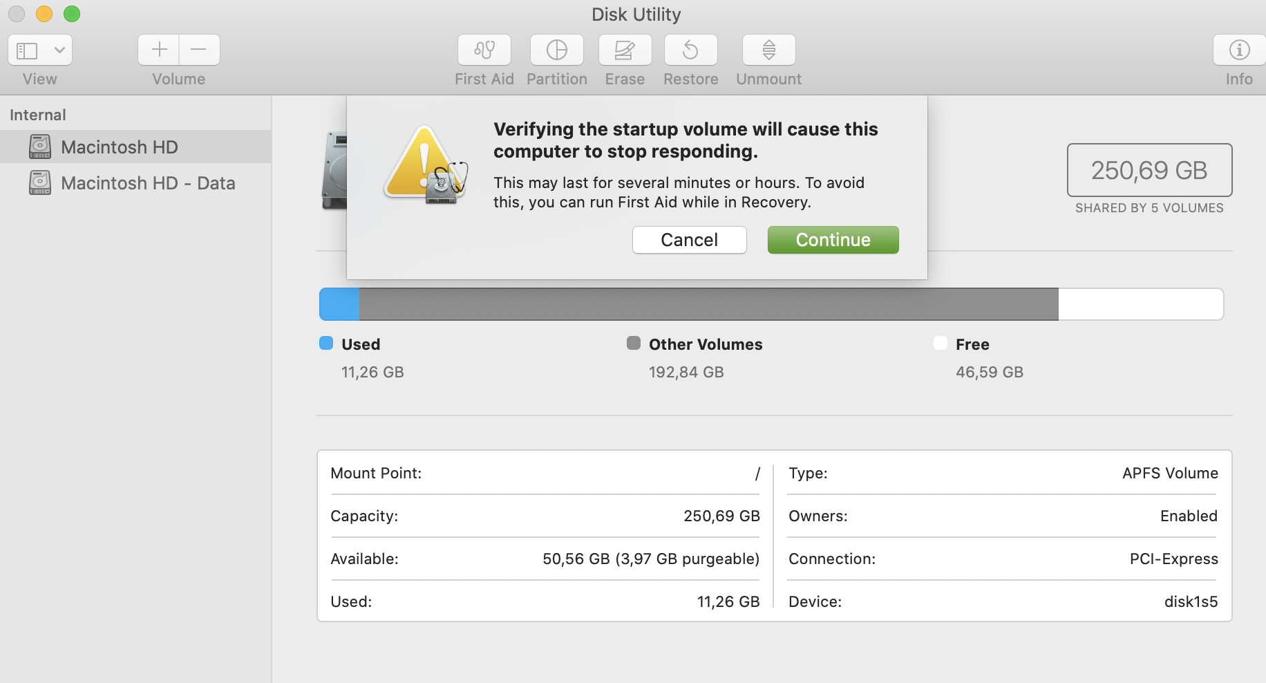 7. Repeat steps 3-6 on ‘Macintosh HD – Data’